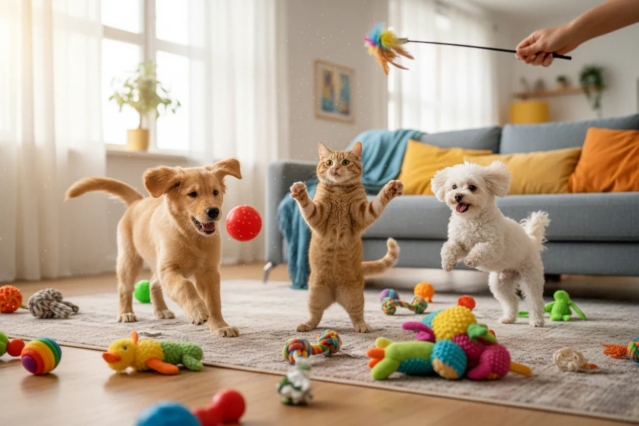Pet Play Toys offers a carefully curated selection of interactive dog toys and cat toys designed to support indoor play, mental stimulation, and enrichment. From puzzle toys and treat dispensers to feather teasers and enrichment games, our collection helps reduce boredom, anxiety, and destructive behavior in pets of all ages.